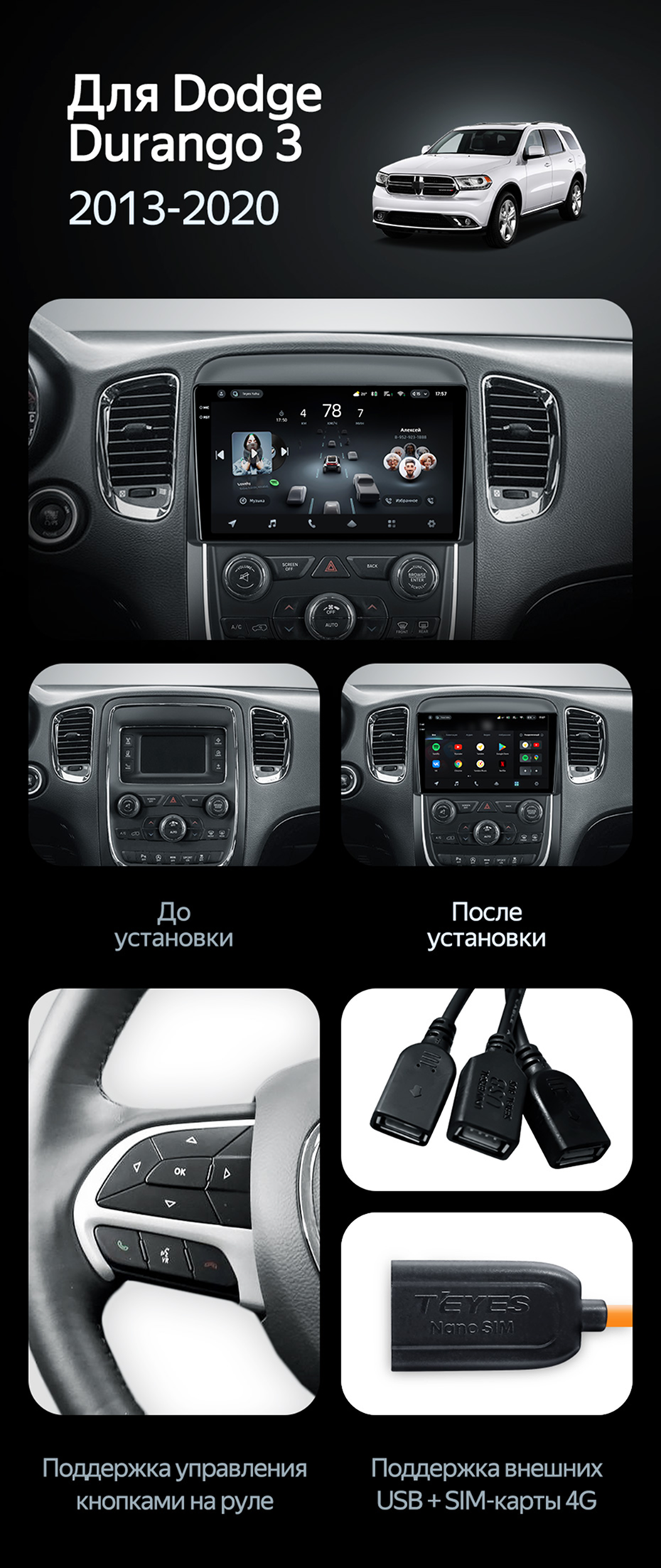 Переходная рамка Dodge Durango 3 (2013-2020) (9") - купить всего за 7 200 руб. в интернет-магазине в Комсомольске-на-Амуре Teyes.com.ru. ✓ Самый лучший выбор мультимедиа ✓ Лучшая замена штатному ГУ ✓ Тел. +7 (800) 775-31-74