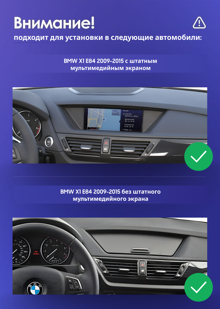 Полный комплект установки магнитолы Teyes с рамкой и проводкой можно выбрать в каталоге штатных магнитол BMW X1 E84 (CIC) (2009-2015).